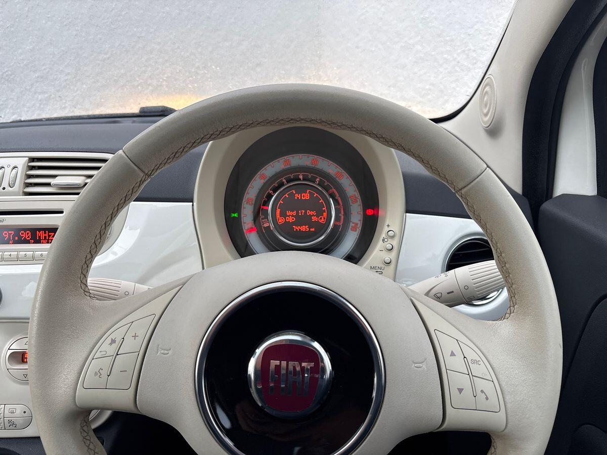 This 2015 Fiat 500 Lounge is a superb example of this popular city car, boasting a fuel efficient 1.2L petrol engine and a Euro 6 emission class. Finished in a stylish colour, it features body coloured side rubbing strips with the iconic 500 logo and attractive 16 inch alloy wheels. Inside, you'll appreciate the convenience of front seats with a memory function, perfect for quickly readjusting after someone else has driven. The fixed glass roof with its integrated sunblind floods the cabin with light, creating an airy and pleasant atmosphere.This Fiat 500 Lounge offers excellent running costs, achieving an impressive 66 miles per gallon, which is a significant advantage for your fuel budget. Its low CO2 emissions also mean it's kinder to the environment. Furthermore, its low insurance group rating indicates that insuring this vehicle will be more affordable compared to many other cars. These highlights demonstrate how this particular Fiat 500 Lounge stands out as a cost effective and practical choice, complemented by the added convenience of rear parking sensors to assist with manoeuvring.
