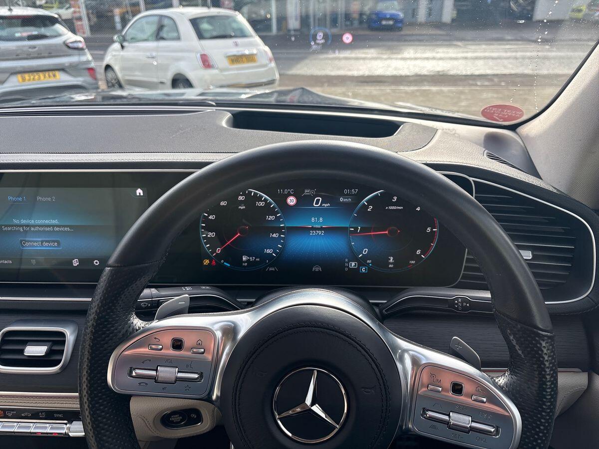 This 2023 Mercedes-Benz GLS400d Night Edition boasts exceptionally low mileage for its age, having covered just 23,792 miles. This impressive seven-seater SUV features a powerful 2.9L diesel engine paired with four-wheel drive, ensuring capability in all conditions. As a Euro 6 compliant vehicle, it meets stringent emission standards, and its substantial 3500 kg towing weight makes it a versatile choice for various needs. The Night Edition trim enhances the already luxurious interior with heated front and second-row seats, a black fabric roof liner, and a dashboard and door beltlines finished in ARTICO man-made leather. Driving comfort is further elevated by the multifunction sports steering wheel, crafted from Nappa leather with a flattened bottom and touch control buttons.Experience exhilarating performance with the GLS400d, capable of accelerating from 0-62mph in a swift 6.3 seconds. This rapid acceleration, combined with its sophisticated features and robust towing capacity, positions this Mercedes-Benz GLS as a superior option compared to other vehicles in its class. The thoughtful inclusion of heated seats throughout the cabin and the premium interior materials underscore the attention to detail and comfort that defines this exceptional SUV.